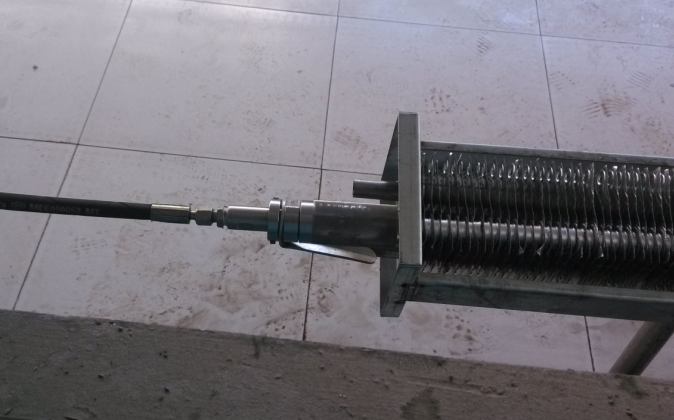 散热器气液胀管机用于散热片与散热管的连接。利用高压增压泵给散热管加压,使散热管的外径增大(一般增大0.3—0.4mm),与散热片产生过盈配合,将散热片与散热管紧密结合起来(图示)。代替了原来的焊接工艺,大大缩短了时间,提高了效率。